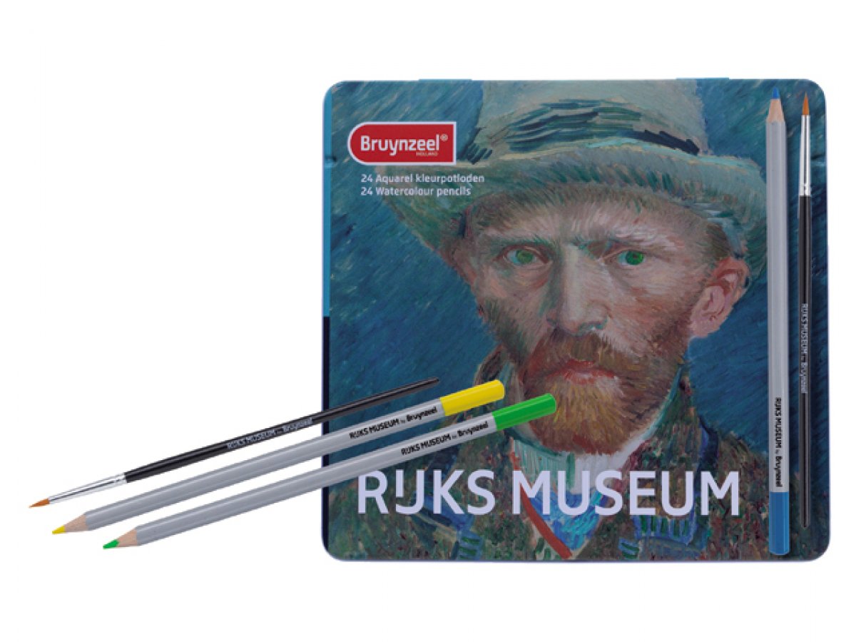 24 boja ovih akvarel olovaka iz kolekcije Dutch Masters izrađene su iz kvalitetnih pigmenata i potpuno su topive u vodi. Možete koristi i kist kako bi proširili boju po papiru i dobili efekt akvarela. Ove olovke se nalaze u prekrasnoj limenoj kutiji sa autoportretom Vincenta van Gogha.
